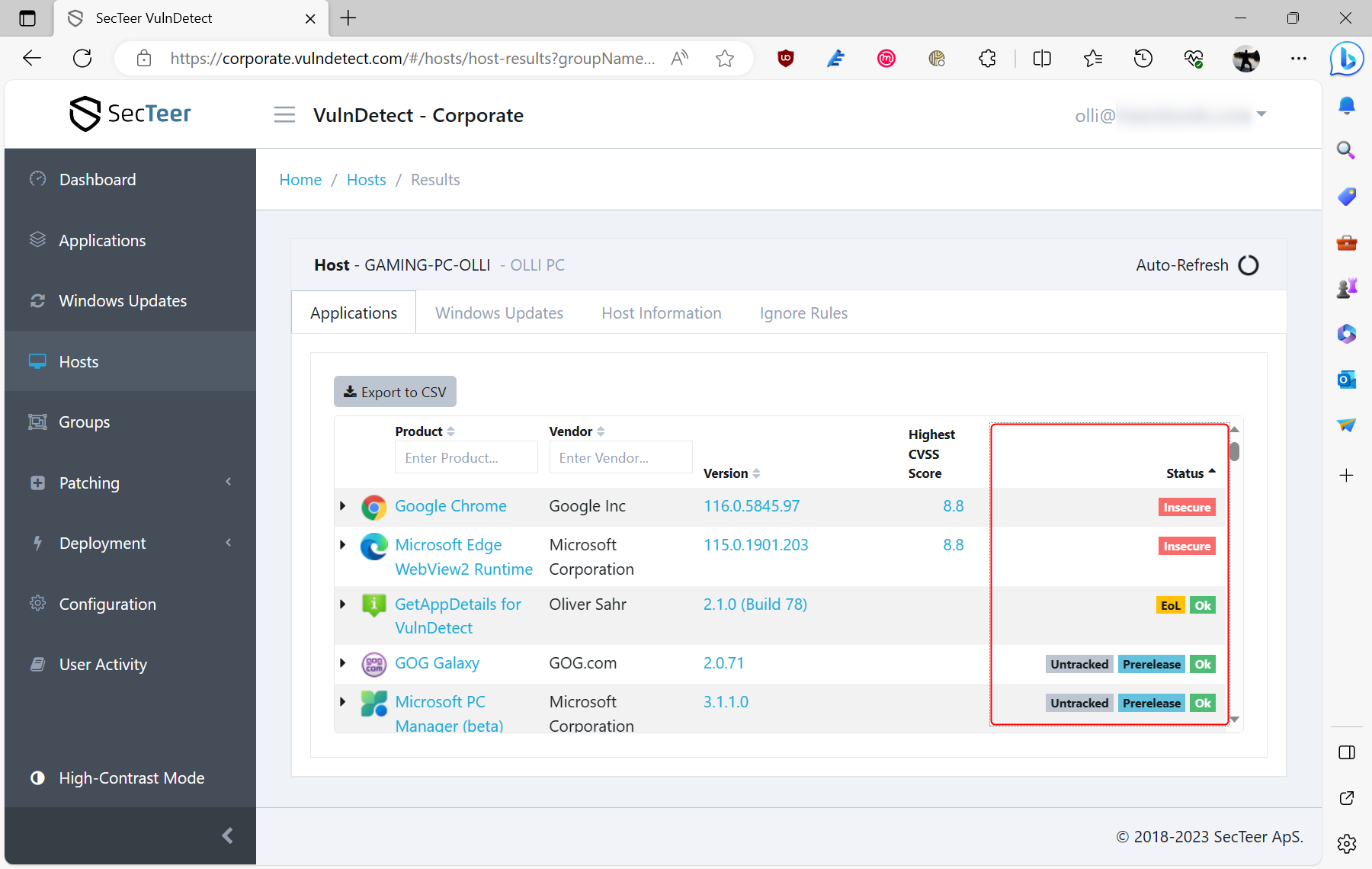 When I open VulnDetect on my Surface Go (because I am not in the office), then there is much room for improvements.